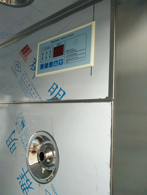 4、風(fēng)淋室兩側(cè)外箱體上(此處電源開關(guān)可預(yù)防緊急情況下切斷電源,有效地提高我們的人身安全)。當(dāng)電源指示燈不通時(shí),不防重新檢查一下以上四個(gè)風(fēng)淋室電源處。