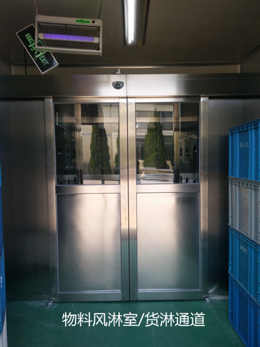 3、自動門風(fēng)淋室雙門關(guān)閉,自動感應(yīng)吹淋。