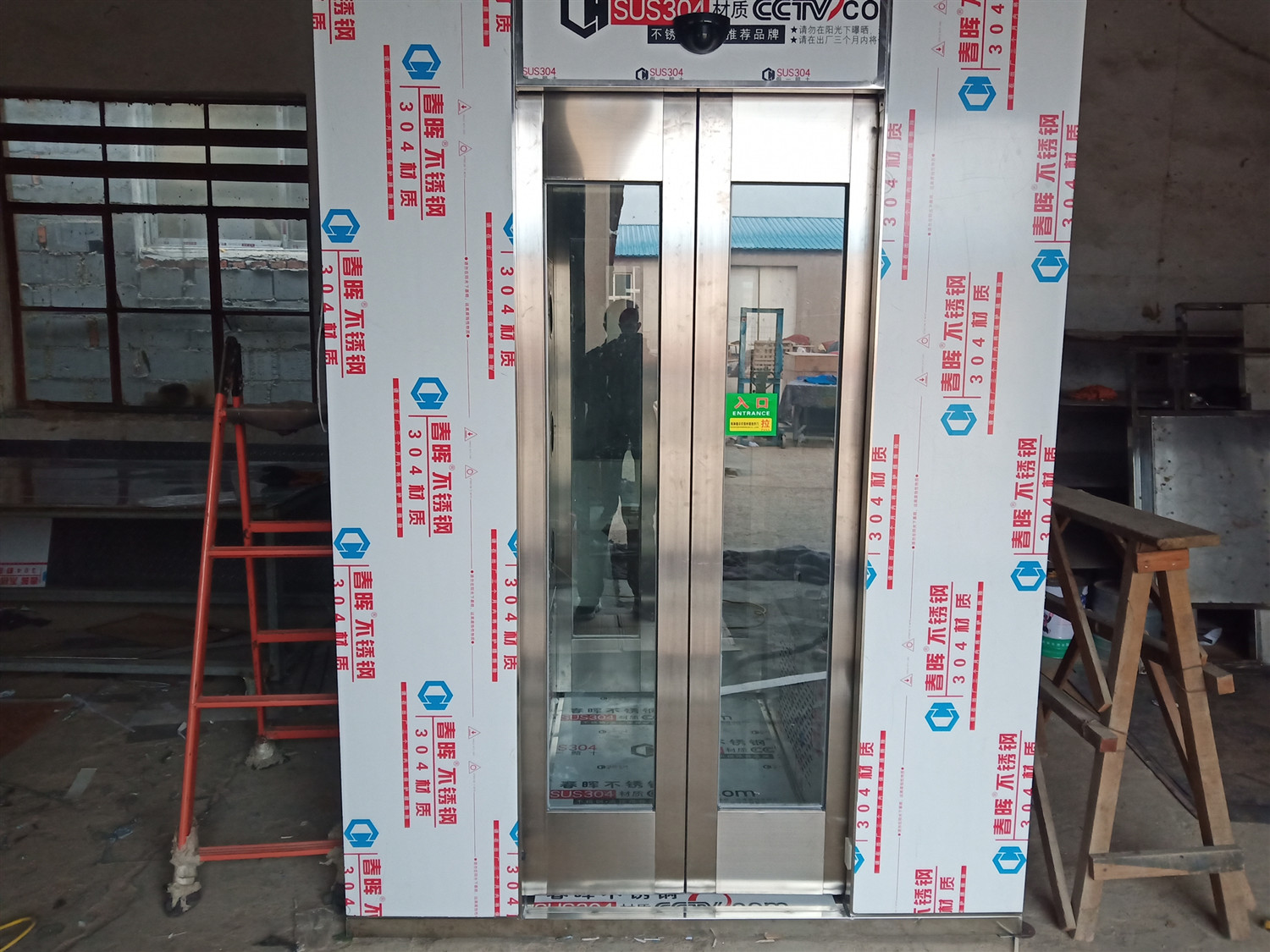 4、自動門風(fēng)淋室吹淋完畢,人從出門離開,出門自動關(guān)閉。